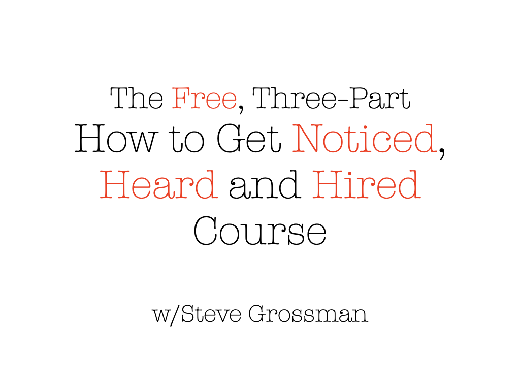 Not ready to spend your money, no problem: just take the Free, Three Session version of How to Get Noticed, Heard, and Hired.